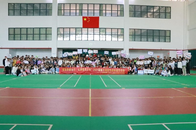 2021年10月24日上午,太阳集团官网新生适应性团体辅导活动在武鸣校区风雨球馆顺利举行。本次团体辅导活动由学院辅导员老师指导,社会工作专业研究生党员策划带领,实习辅导员党员、新生朋辈辅导员和团学骨干相互协助,共同组织开展。活动以“绽放青春光芒,礼赞建党百年”为主题,将班级“凝聚拼搏”与国家“建党百年”相融合,旨在让新生在新同学、新班级、新学校中寻到归属感,以激昂奋进的精神状态投入老员工活中,并在建党百年的浓厚氛围中,以全局意识、大局意识思考大学的前进方向,将个人梦想融入到伟大的“中国梦”。
